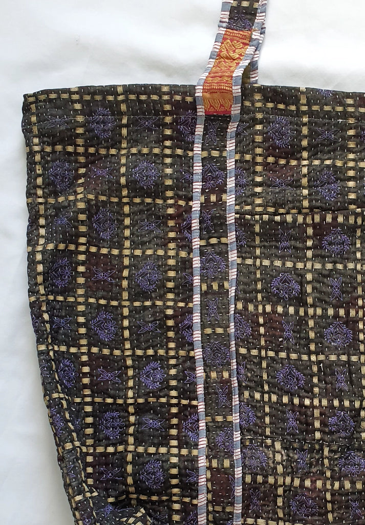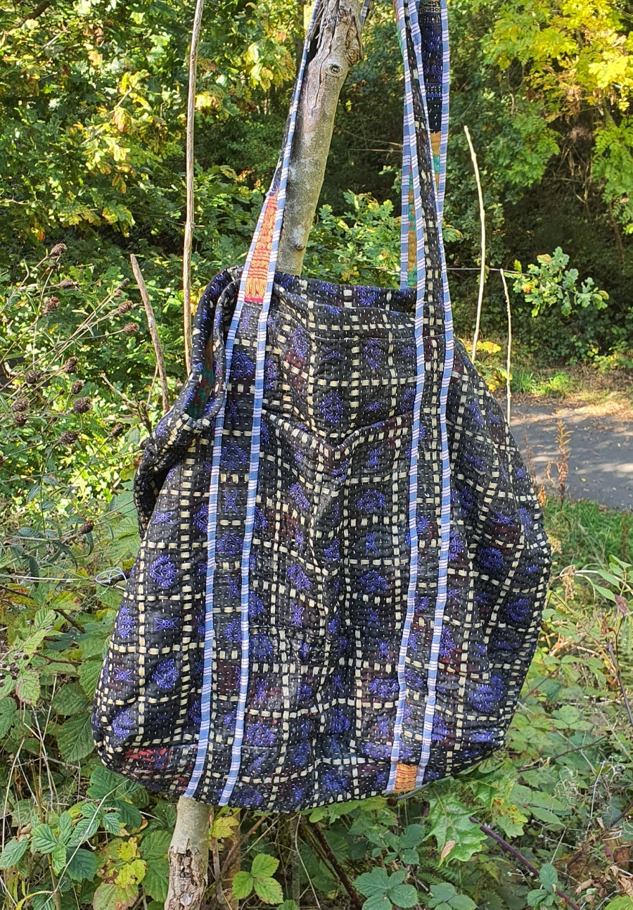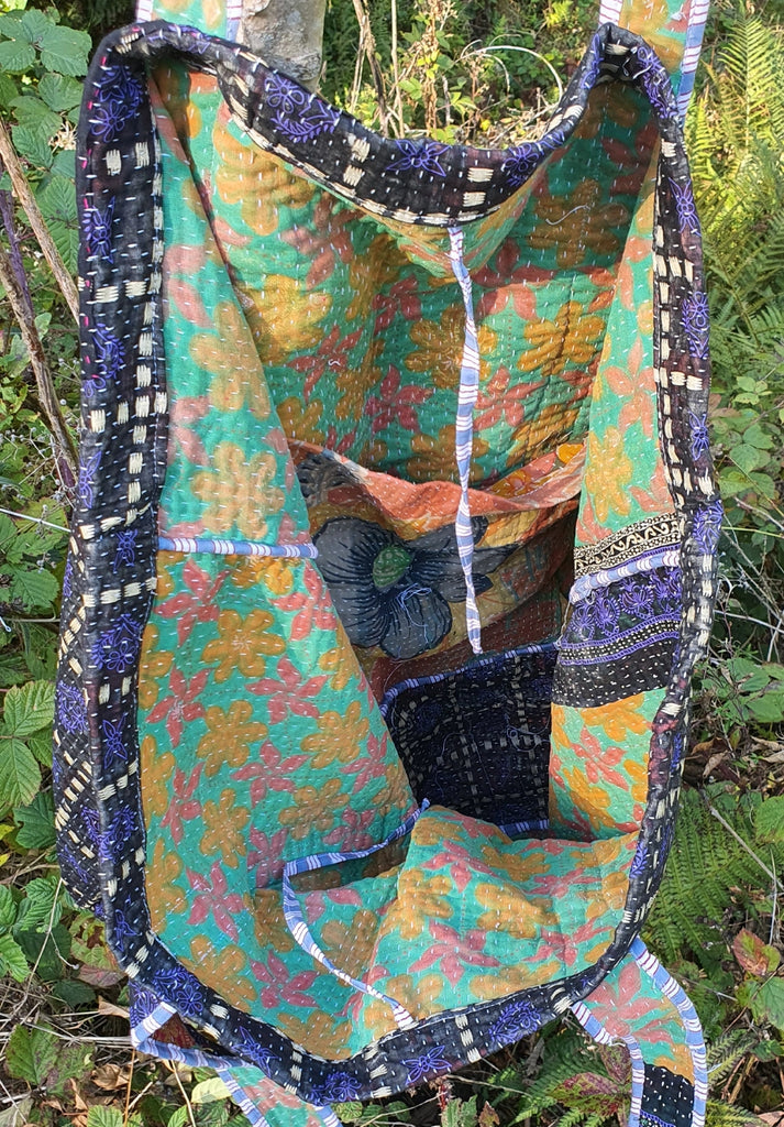Crafted from vintage kantha quilts and off-cut block print fabrics from our eye masks, this large tote bag is a celebration of reinvention, resourcefulness, and everyday beauty. Each piece is unique, made using kantha quilts at the end of their life cycle, now thoughtfully refashioned into something new, purposeful, and full of charm.