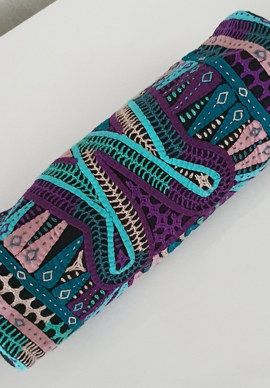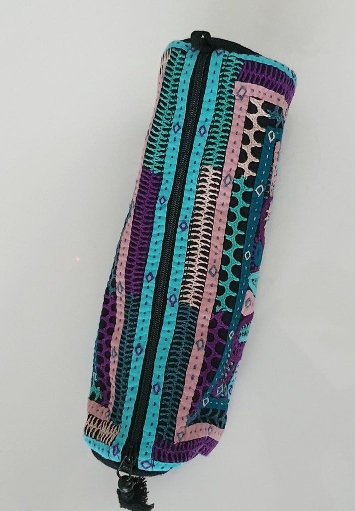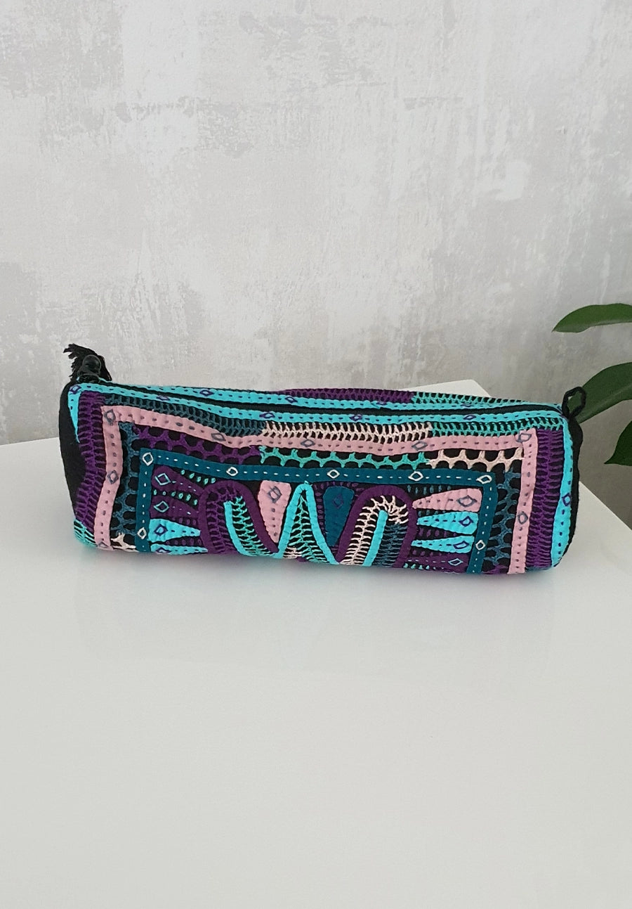 Handmade pouch made by Kutch artisans, Gujarat India by an amazing collective, socio-cultural enterprise comprising 1,200 rural master craftswomen owned by a craftswomen. The aim here is to create sustainable livelihood opportunities for embroidery craftswomen in the remote areas of Kutch, but also become a platform for them to express their creativity.
