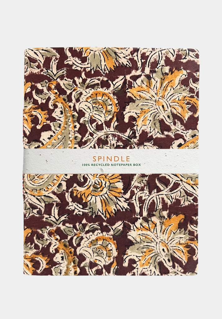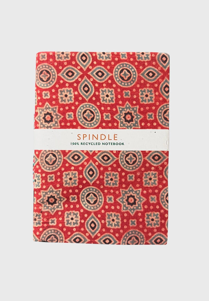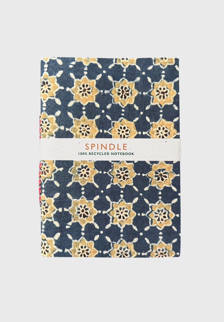 A collection of handmade notebooks made using off-cut fabrics (no new fabrics) produced by rural crafts people in India. All fabrics used are dyed using traditional techniques and natural dyes. Each book is bound by hand using a decorative string that is visible on the spine.