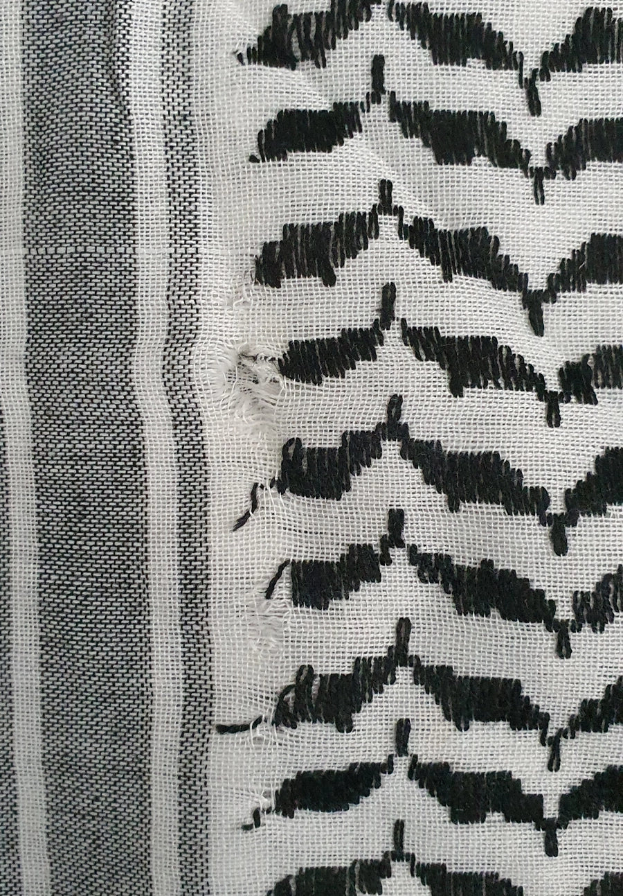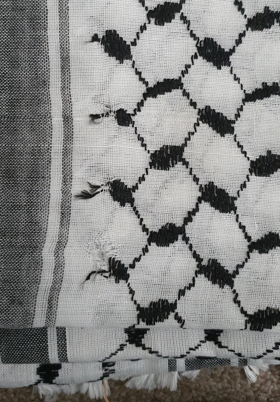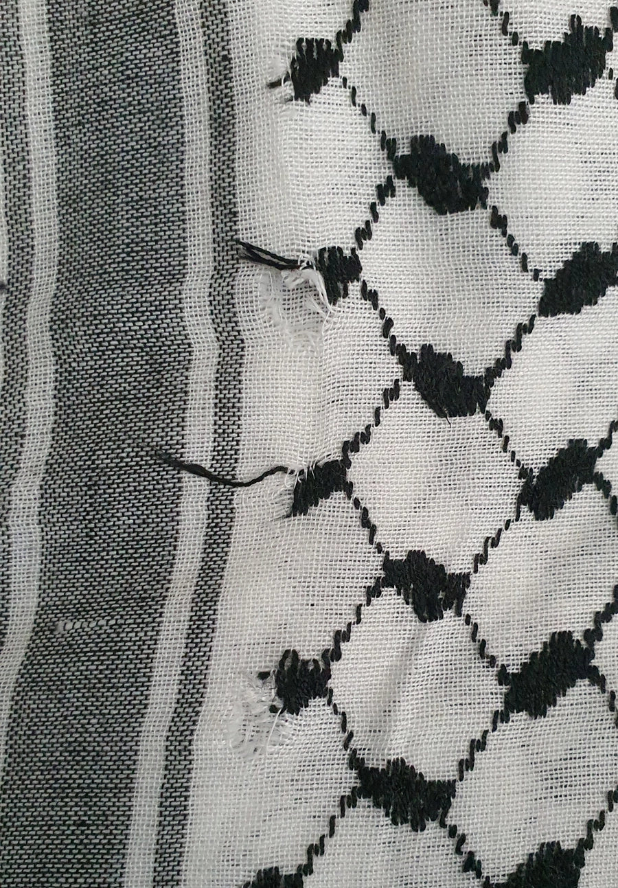 Imperfect Arafat keffiyeh from one of two remaining factories still producing keffiyeh in the West Bank, Palestine. Keffiyeh are synonymous with the quest for Palestinian freedom and independence.