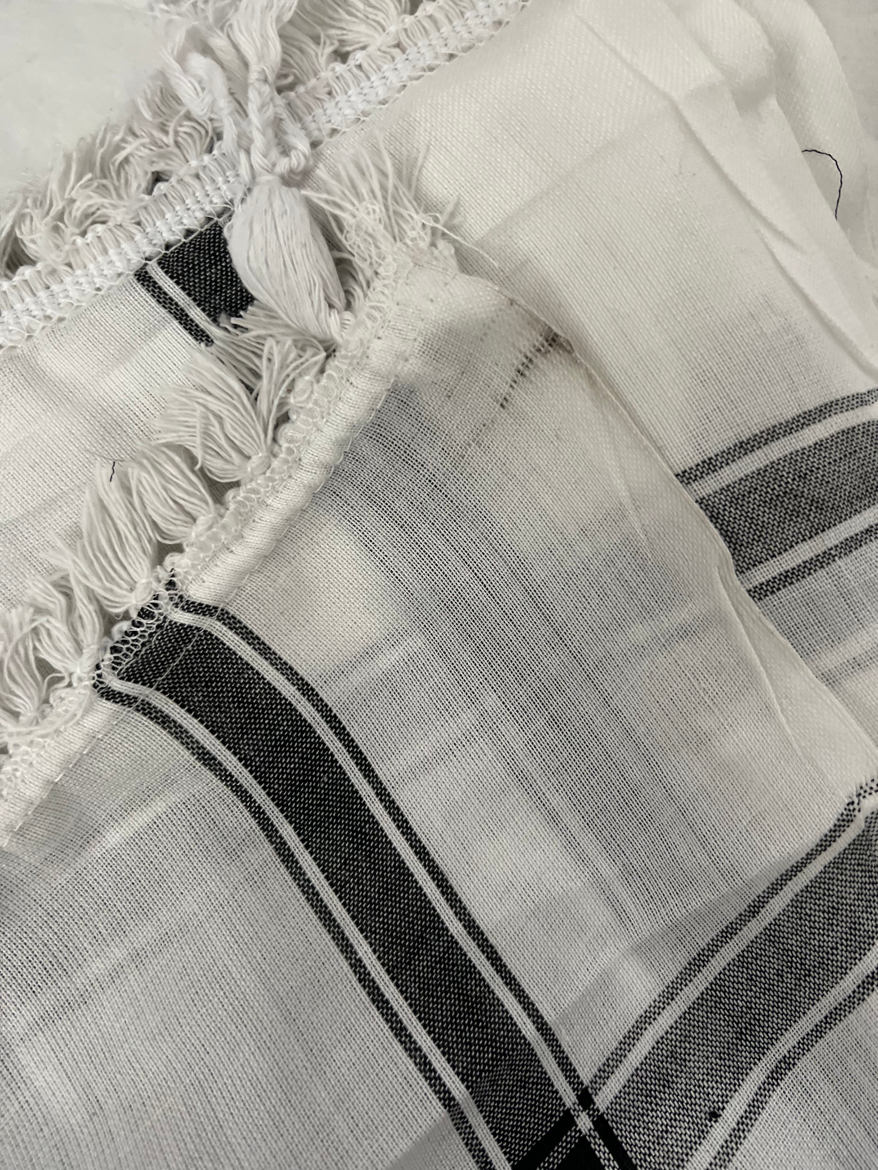 Authentic Palestinian keffiyeh on white background with black colour thread, finished with a stitched Tatreez strip with Palestinian flag colours arrived with imperfections. Most of the imperfections are only on the tatreez flag strip. Some keffiyeh have small marks that may or may not come out in the wash. These pics of each keffiyeh, these are not the combined imperfections on one.