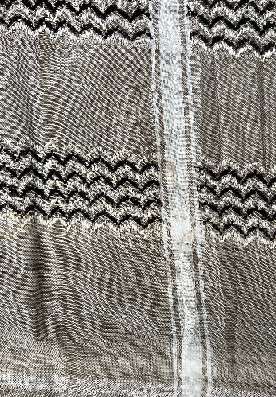 Sale item is sold as seen and non-refundable. This beautiful keffiyeh arrived with a mark, it may or may not come out in the wash,
