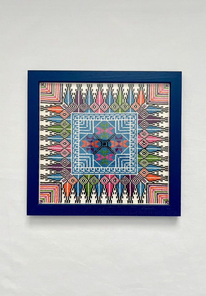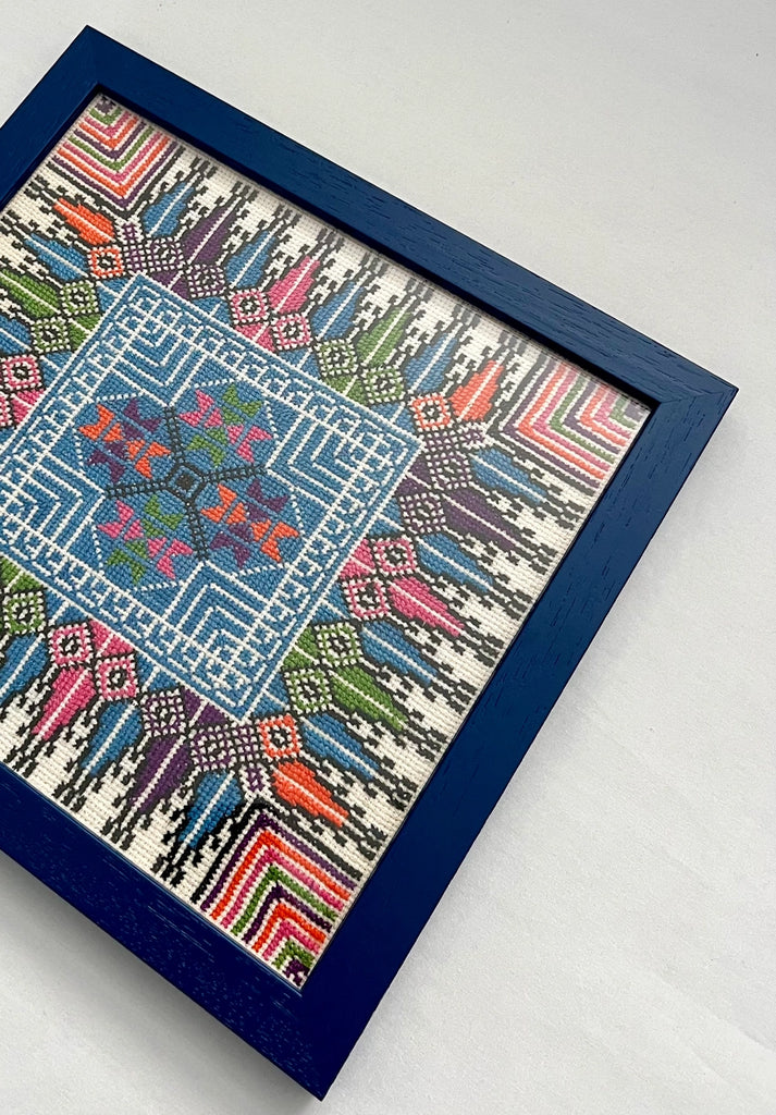 Blue Framed Hand Embroidered Tatreez Art - Bethlehem, Palestine