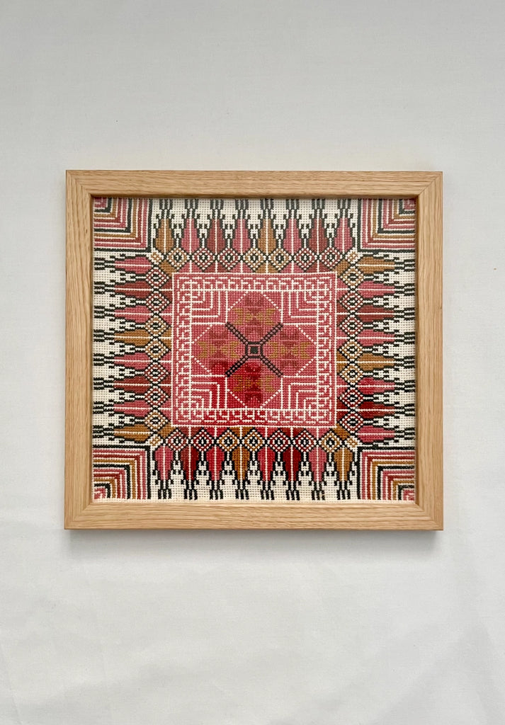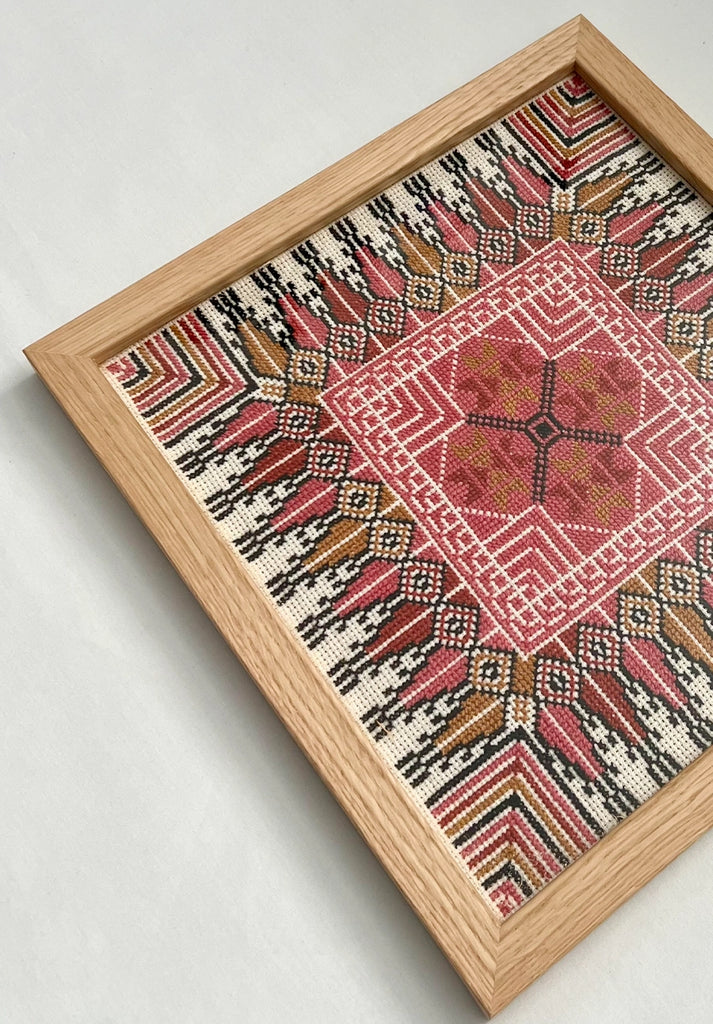 Peach Framed Hand Embroidered Tatreez Art - Bethlehem, Palestine