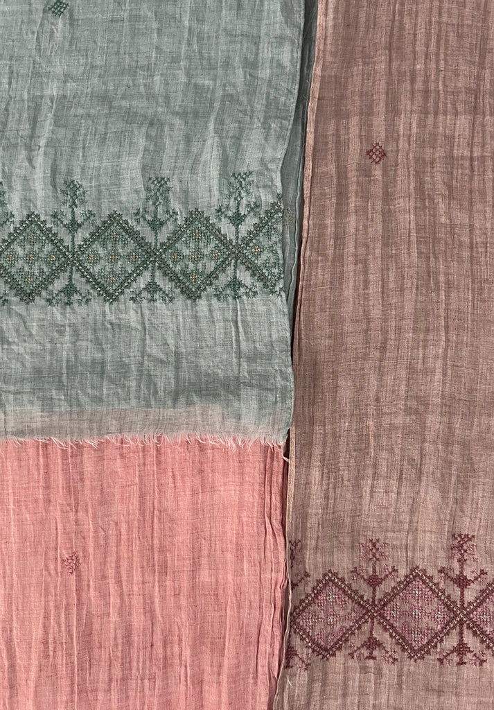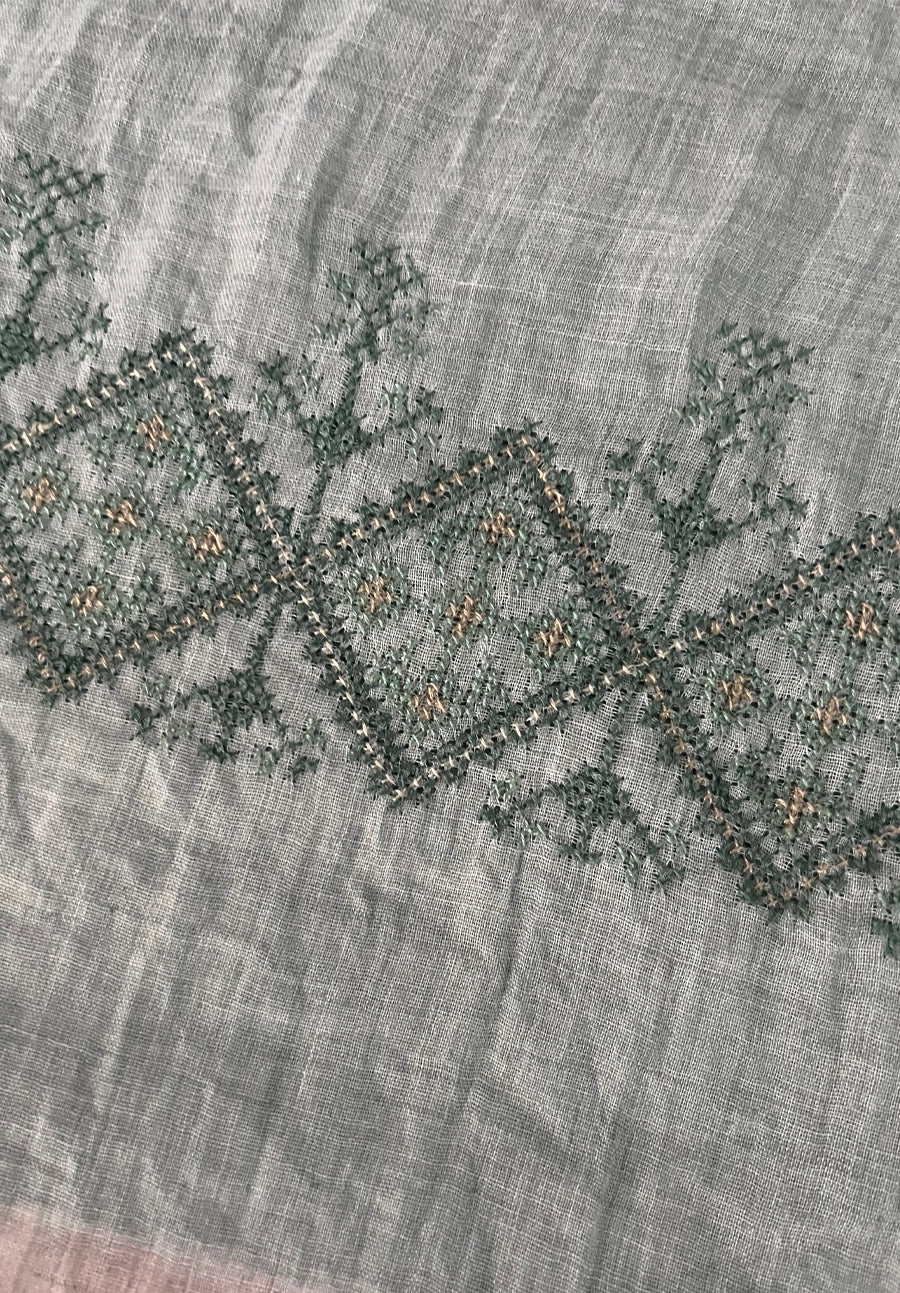Green Linen Tatreez Embroidered Scarf, Hebron - Palestine